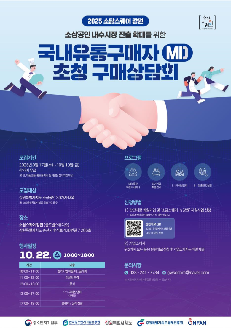 이번 상담회에는 도내 유망 소상공인 36개 기업이 참가하며, 참가 기업들은 전국 주요 유통사 엠디(MD)와의 1:1 맞춤형 구매상담을 통해 실질적인 비즈니스 기회와 판로 확대의 발판을 마련하게 된다.