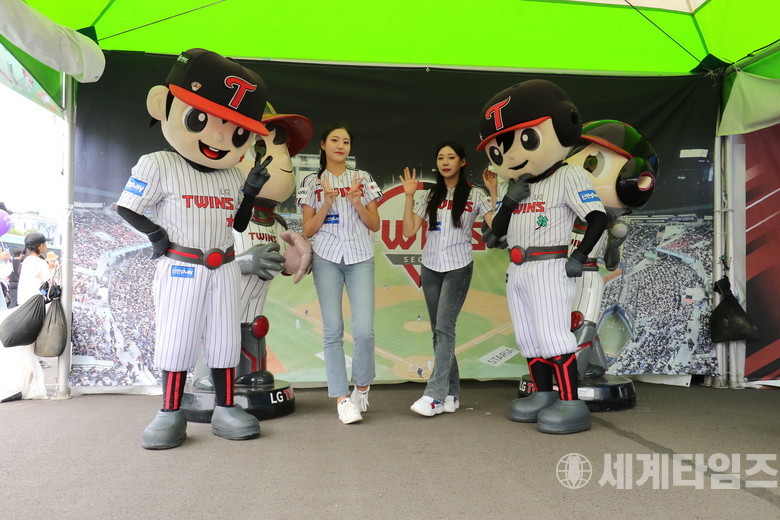 LG트윈스 치어리더들이 포토존을 열어서 안전마당 박문객들과 선물타임 및 포토타임을 가졌다.