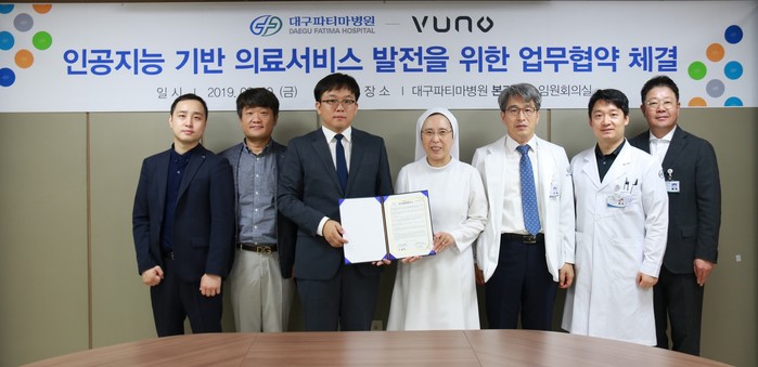 의료 인공지능(AI) 솔루션 개발 기업 주식회사 뷰노(대표 이예하)는 지난 20일 대구파티마병원과 ‘인공지능 기반 미래형 의료서비스 발전’을 위한 업무협약(MOU)을 체결했다고 밝혔다.