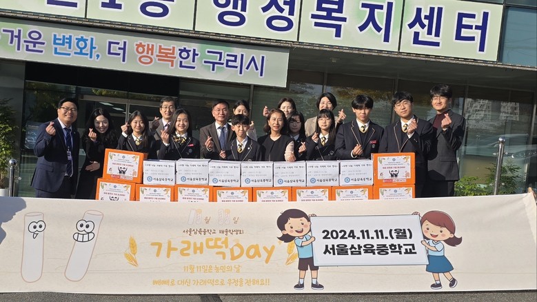 [남양주시 세계타임즈=송민수 기자] 구리남양주교육지원청 서울삼육중학교(교장 전상훈)는 지난 11월 11일 농민의 날을 맞아 학생자치회 주관으로 ‘가래떡 데이’ 행사를 열고, 저소득층 가정을 돕기 위한 쌀 모으기 및 가래떡 나눔 활동을 진행했다. 이번 행사는 학생자치회 학생들이 기획하여 준비하였으며, 학교 구성원의 따뜻한 참여 속에서 이뤄졌다.