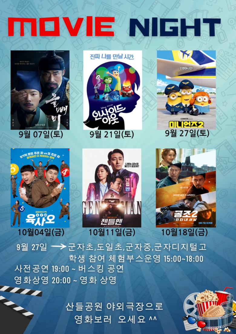 본 행사는 인근에 영화관이 없는 군자동 주민들에게 문화생활의 혜택을 제공하고 관내에 있는 여러 학교에 소속되어 있는 학생들의 자치 강화 활동의 일환으로 지역 주민들의 명소이자 쉼터인 산들장소에서 개최되었다.