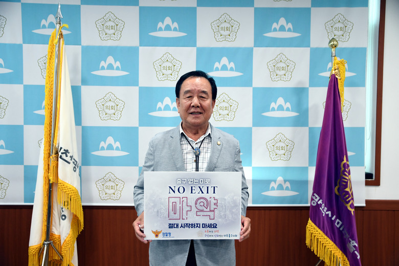 [미추홀구 세계타임즈=심하린 기자] 배상록 인천시 미추홀구의회 의장이 23일 마약범죄 예방 ‘노 엑시트(NO EXIT)’릴레이 캠페인에 동참했다.