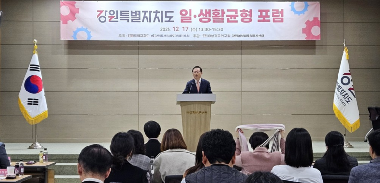 [강원도 세계타임즈=김민석 기자] 강원특별자치도는 12월 17일(수) 강원특별자치도와 강원특별자치도경제진흥원이 공동 주최하고, 강원특별자치도여성가족연구원과 강원여성새로일하기센터가 주관하여 강원특별자치도여성가족연구원 1층 강당에서 「강원특별자치도 일·생활균형 포럼」을 개최했다.