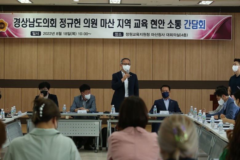 [경남 세계타임즈=최성룡 기자] 경상남도의회 교육위원회 정규헌 의원(창원9, 국민의힘)은 18일 창원교육지원청 마산청사 4층 대회의실에서 마산 지역 교육 현안 해결 방안 모색을 위한 간담회를 개최하였다.