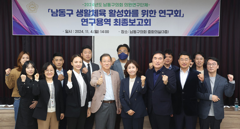 [남동구 세계타임즈=심하린 기자] 남동구의회 의원연구단체 「남동구 생활체육 활성화를 위한 연구회」(회장 김은숙 의원)는 지난 4일 구의회 중회의실에서 정책연구 용역 최종보고회를 개최했다.