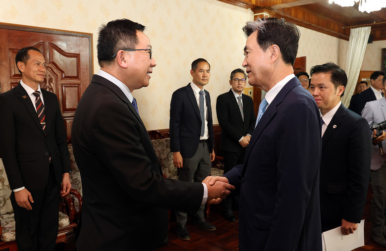 김태흠 지사는 지난 18일 라오스 비엔티안에 위치한 농업환경부 접견실에서 린캄 두앙사완 장관을 만났다.