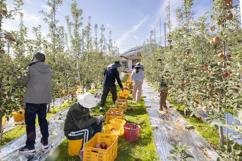 직원들은 농장주로부터 작업내용과 방법에 대해 설명을 듣고 난 후 본격적으로 사과와 생강 수확에 나섰다.