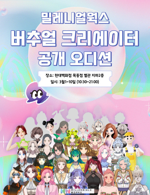참가자들은 현장에서 ‘애니모먼트’라는 생성형 AI 기술이 접목된 포토부스에서 아바타를 만들고 소셜 미디어에 공유할 수 있다. 브이튜버로서 직접 방송을 진행해 볼 수 있는 체험 기회도 제공된다. 지난 27일까지 사전 모집했던 오디션은 접수 시작 3일 만에 300명이 넘는 참가자들이 몰리며 브이튜버에 대한 대중의 뜨거운 관심을 보여줬다. 이번 오디션에서 선발된 사람은 밀레니얼웍스 소속 크리에이터가 되어 활동에 필요한 다양한 지원을 받을 수 있다.