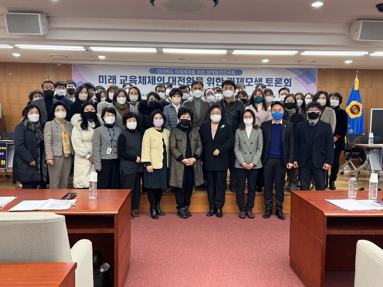 [전북세계타임즈 = 전영숙 기자] 전북도의회 연구단체 ‘전라북도 미래세대를 위한 정책발전연구회’가 주최한 ‘미래 교육체제의 대전환을 위한 과제 모색 토론회’가 지난 19일 성황리에 마쳤다.