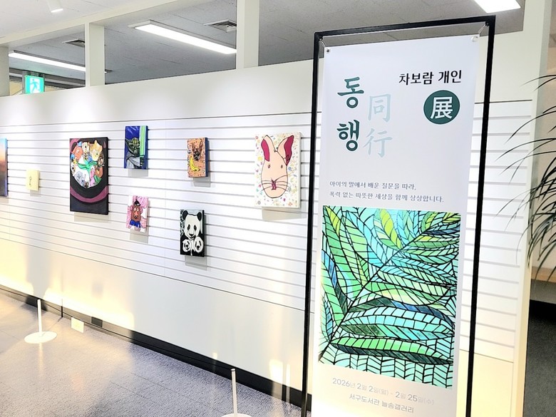 [인천 세계타임즈=심하린 기자] 인천광역시교육청서구도서관(관장 정연순)은 2월 2일부터 25일까지 1층 늘솜갤러리에서 차보람 작가 개인전 ‘동행’을 운영한다.