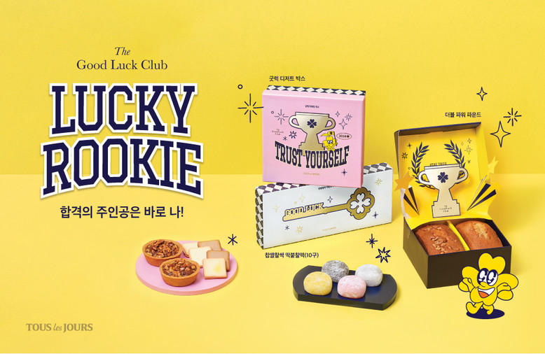 올해 뚜레쥬르의 수능 신제품 콘셉트는 ‘LUCKY ROOKIE, 합격의 주인공은 바로 나!’다. 긍정적인 마인드를 의미하는 유행어 ‘럭키비키’와 새로운 시작을 앞둔 수험생을 빗대어 표현한 ‘루키’에서 착안한 메시지다. 특히 이번 패키지는 미국 명문 아이비리그 감성을 적용한 프레피 디자인으로 트렌디함과 고급스러움을 더해 수험생들에게 선물하기 제격이다.