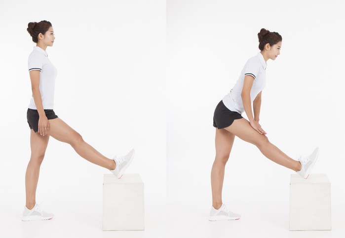 이럴 땐 ‘무릎 꾹꾹 스트레칭’을 추천한다. 방법은 매우 간단하다. 의자 위에 한 쪽 발을 얹고 두 손으로 무릎 관절 부분을 지그시 눌러주기만 하면 된다. 15초간 유지하고 발을 바꿔 같은 동작을 실시한다. 좌우 1세트로 2회 반복한다. 무릎 꾹꾹 스트레칭은 무릎 관절을 마사지 해주는 효과와 함께 다리 전체를 스트레칭 해줘 무릎 부상 예방에 적합하다.