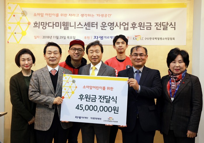 자생의료재단(이사장 박병모)은 지난 29일 한국백혈병소아암협회(회장 이중명)에 소아암 환아 치료 및 교육을 위한 후원금 4500만원을 전달했다고 30일 밝혔다.