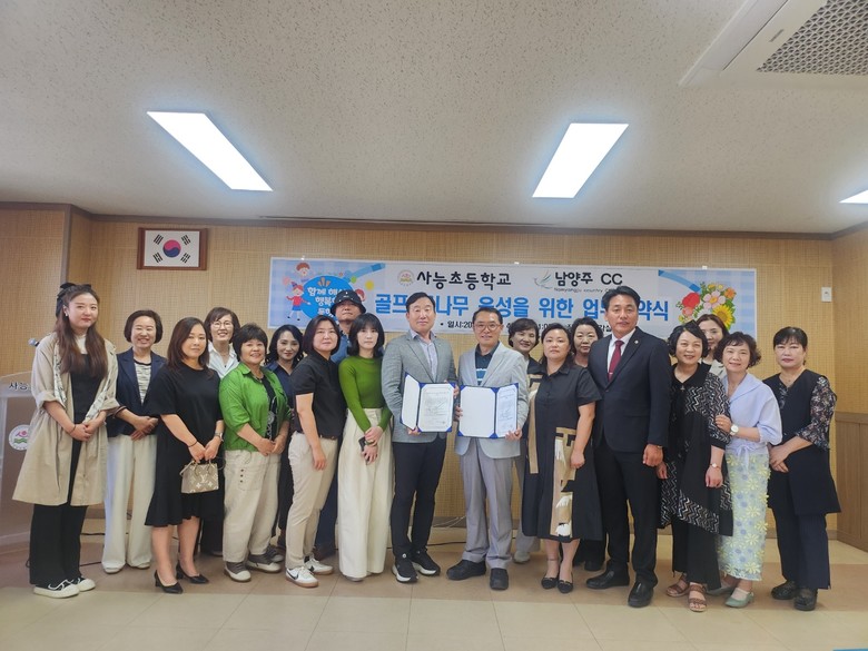남양주 사능초등학교(교장 윤광현)는 6월 4일 남양주 C.C(본부장 이태호)와 사능초 골프 꿈나무 육성을 위한 업무협약을 체결했다.