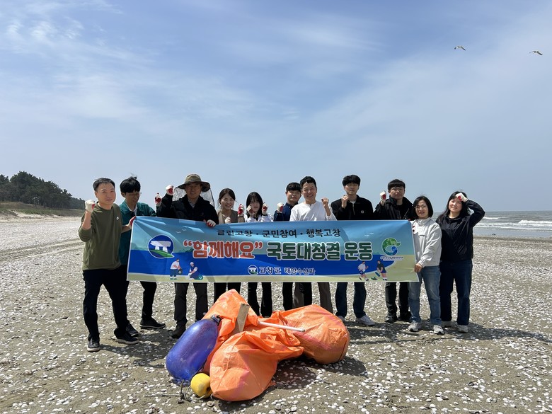해양수산과 직원 약 20명이 환경정비 활동에 참여한 가운데 고창군 해리면 광승리 명사십리 일원에서 바닷물에 밀려온 각종 해양쓰레기를 수거하고 갯벌 인근 공터와 도로변에 관광객들이 버리고 간 폐기물, 담배꽁초, 페트병 등 2톤을 수거하였다.