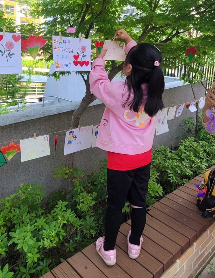 이날 아침, 유치원 등굣길 나무에는 유아들이 정성껏 쓴 손편지와 곱게 접은 종이 카네이션이 걸려 눈길을 끌었다. 아이들은 알록달록하게 그린 꽃다발과 함께 “사랑합니다”, “고맙습니다”라는 글귀를 또박또박 써내려가며 선생님들께 마음을 전했다.