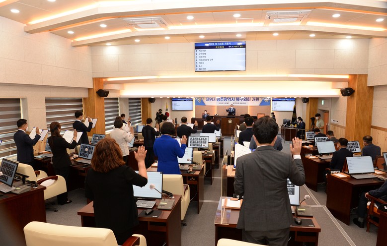 김형수 의장은 “제9대 북구의회가 임기 동안 초심을 잃지 않고 의회 본연의 기능을 다 하도록 구민과 소통하고 정책 역량을 높이는 데 최선을 다하겠다.”라고 말했다.