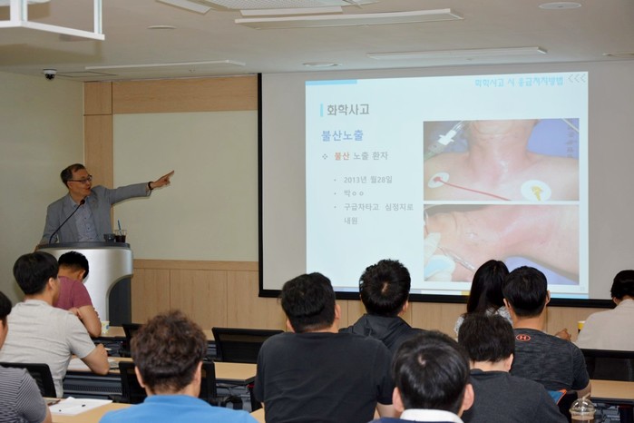 지난 5월 22일에는 소방재난본부 재난종합지휘센터 소방대원과 경기지방소방서의 119구급대원을 대상으로 화학사고 대응교육을 진행했다. 또 5월 24일에는 관련 기업을 대상으로 교육이 이뤄졌다.