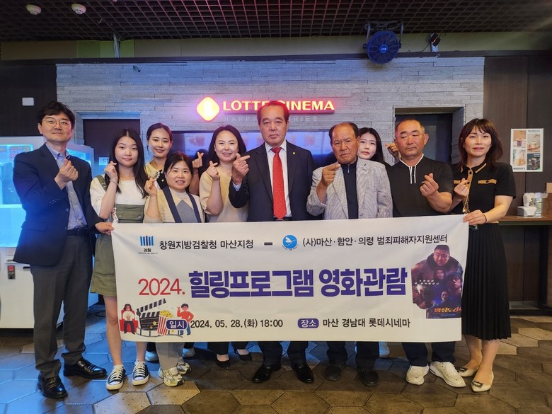 [세계타임즈]최성룡기자 = (사)마산·함안·의령 범죄피해자지원센터(이사장 윤태석)는 2024년 5월 28일 18:00 김종식 사무처장의 진행으로 범죄피해자 및 가족들에게 치유와 힐링의 기회를 제공하고자 “2024. 힐링프로그램 영화관람”을 개최하였다.