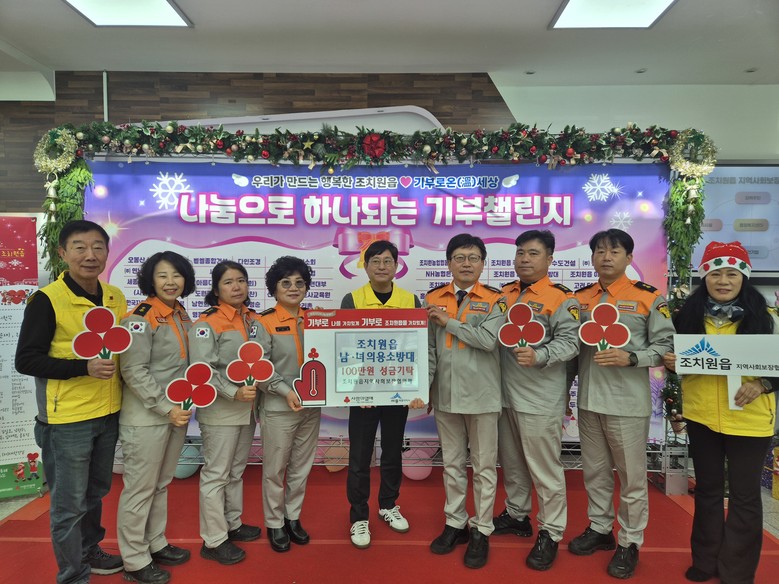 [세종 세계타임즈=이채봉 기자] 세종북부소방서 조치원읍 남녀의용소방대(남성대장 허왕·여성대장 류근남)가 최근 조치원읍 행정복지센터에서 연말을 맞아 따뜻한 나눔 기부를 펼쳤다.