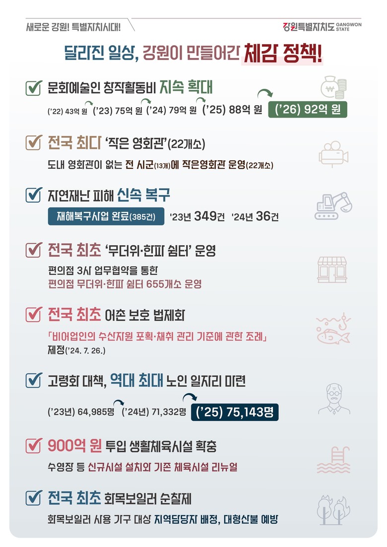 특히 민선 8기 강원도는 특별자치시대 출범과 함께 산업·관광·민생 등 도정 전반에서 변화를 추진해 왔으며, 그 성과가 점차 구체화되고 있다.