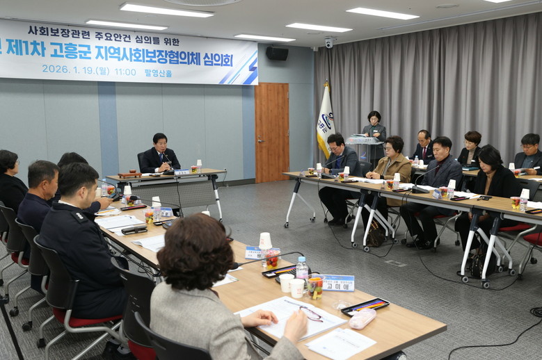 [고흥군 세계타임즈=우덕현 기자] 고흥군(군수 공영민)은 지난 19일 군청 팔영산홀에서 ‘2026년 제1차 고흥군 지역사회보장협의체 심의회’를 개최했다고 밝혔다.