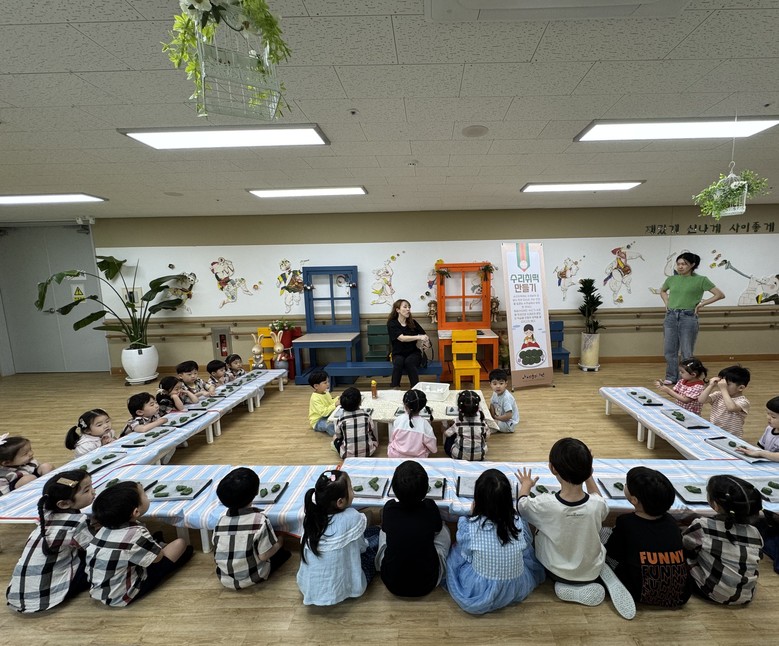유아들은 단옷날 수리취떡을 먹게 된 유래를 알아보고, 떡 반죽을 만져보며 수리취떡의 향을 느껴보며 문양도 내고 바로 쪄서 맛보는 활동을 해보았다. 환경 교육의 일환으로 집에서 가져온 그릇에 직접 만든 떡을 담아 집으로 가져가 가족과 함께 맛보는 행복한 시간을 가졌다.
