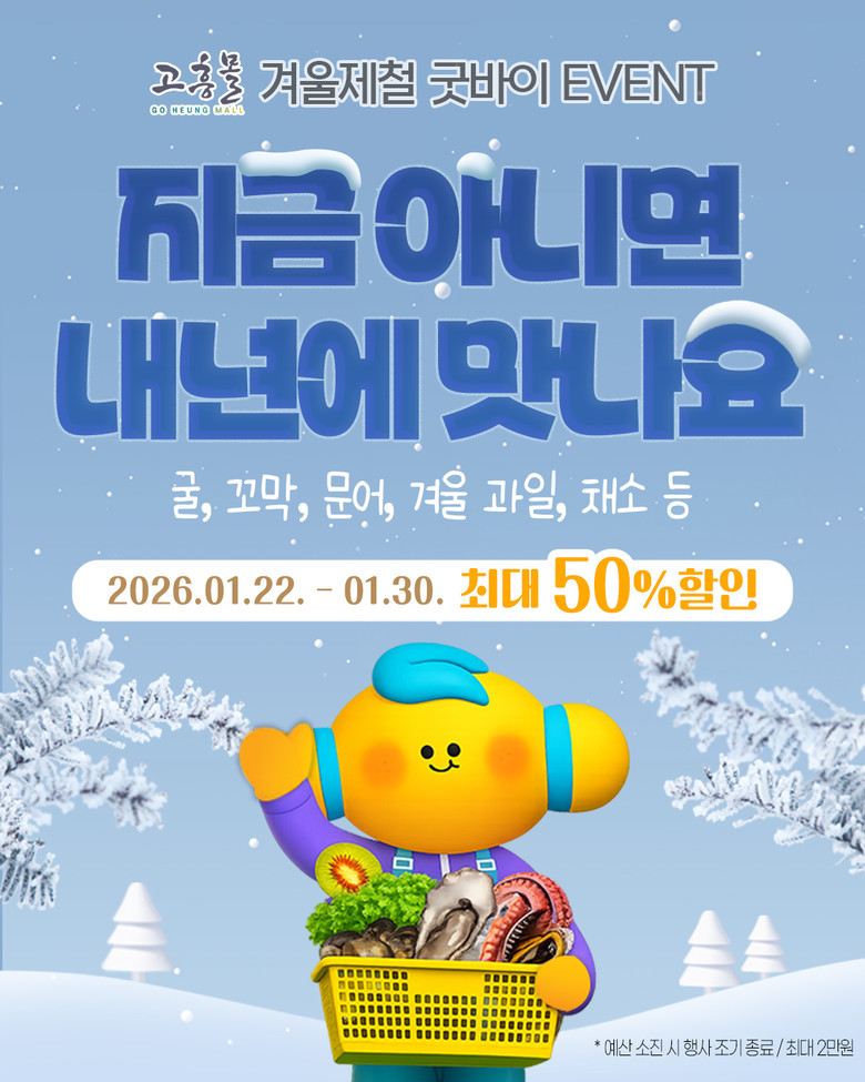 겨울 바다에서 생산되는 수산물은 낮은 수온의 영향으로 육질이 단단하고 풍미가 뛰어나 제철에 소비할수록 만족도가 높은 품목이다. 고흥몰은 이러한 제철 특성을 반영해 ‘지금 아니면 내년에나 맛볼 수 있는 겨울 먹거리’를 핵심 메시지로 내세우고, 소비자 체감 혜택을 높이기 위해 대폭적인 할인 혜택을 마련했다.