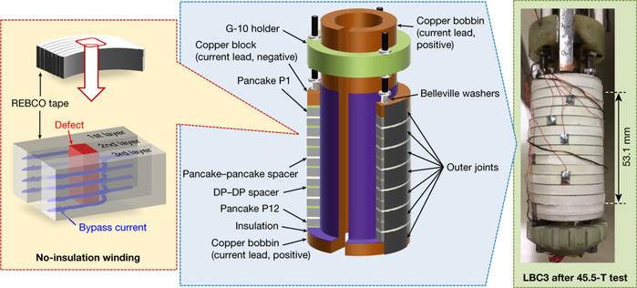 [세계타임즈 이영진 기자] 서울대학교 전기정보공학부 한승용 교수 연구팀이 미국 국립 고자기장연구소 (National High Magnetic Field Laboratory)와 공동으로 '무절연 고온 초전도 자석(No-Insulation High Temperature Superconductor Magnet)'을 이용해 직류 자기장 세계 최고 기록을 달성했다.
