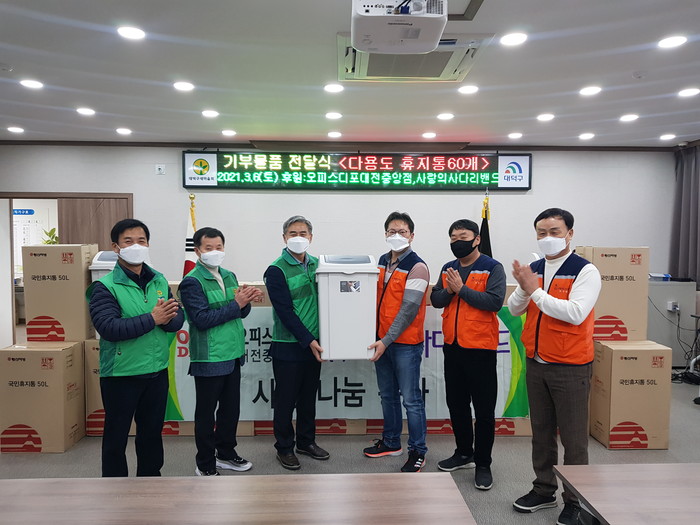 국민휴지통을 후원한 오피스디포 송민섭 대표는 “코로나19로 힘든 시기에도 대덕구지역을 위해서 열심히 봉사하고 있는 대덕구새마을회에 감사를 전한다,”고 말했다.