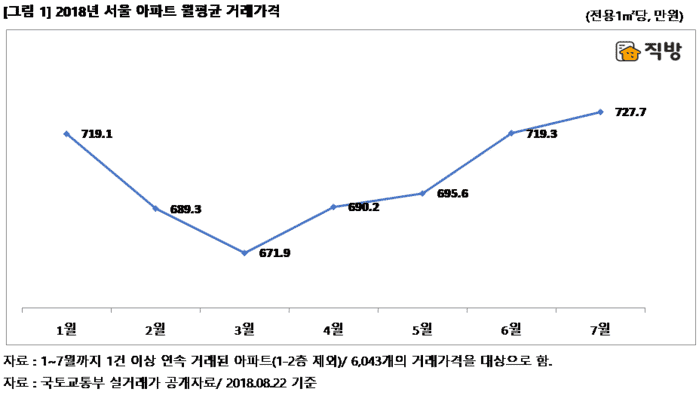 [세계타임즈 심귀영 기자]부동산정보서비스 ㈜직방(대표 안성우)이 국토교통부 아파트 매매 실거래가를 분석한 결과, 양도소득세 중과를 앞두고 3월 낮아졌던 거래가격이 회복하면서 넉 달 새 서울 아파트값은 8.3% 상승한 것으로 나타났다.