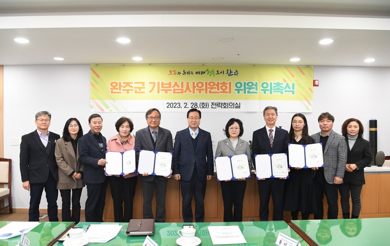 [완주=세계타임즈 = 김윤영 기자] 완주군이 성숙하고 건전한 기부문화 조성과 정착을 위해 기부심사위원회를 새롭게 구성하고 신규 위원을 위촉했다.
