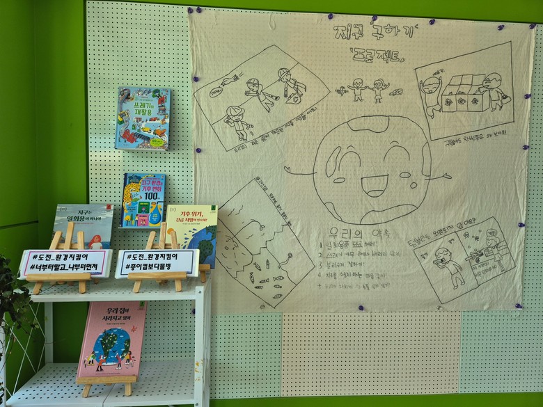 이곳에는 “#도전_환경지킴이”, “#너부터말고_나부터먼저” 같은 학생들이 만든 해시태그 피켓과 관련 도서, 전시물도 함께 비치되어 있어 누구나 쉽게 환경에 관심을 가질 수 있는 환경 교육 플랫폼의 역할을 톡톡히 해내고 있다.