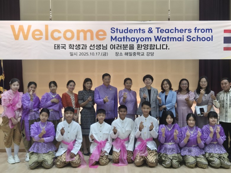[세종 세계타임즈=이채봉 기자] 세종 해밀중학교(교장 임정진)는 10월 17일(금) 본교에서 태국 Mathayom Watmai Krongthong School 학생 및 교직원을 맞이하여 국제교류활동을 실시했다고 밝혔다.