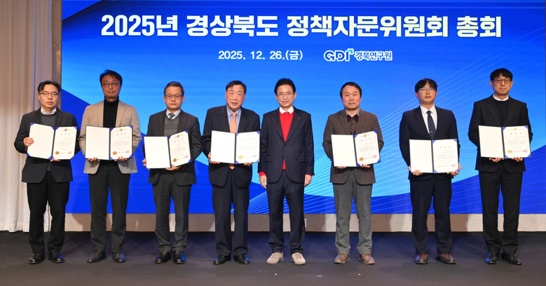 [경북 세계타임즈=한윤석 기자] 경상북도는 26일 스탠포드호텔에서 2025년 정책자문위원회 총회를 개최하고, 2026년 주요 정책 방향과 미래 전략을 공유하며 각 분야별 정책 추진을 위한 발전 방안을 논의했다.