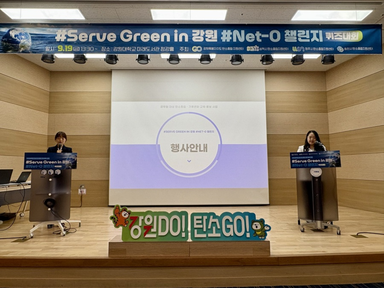 [강원도 세계타임즈=김민석 기자] 강원특별자치도·삼척·원주·춘천 탄소중립 지원센터(센터장 김진영·김주영·전용한·임성린)는 19일(금), 강원대 정강홀에서 도내 공무원 100여 명을 대상으로 탄소중립 퀴즈대회 「#Serve Green in 강원 #Net-0 챌린지」를 개최했다고 밝혔다.