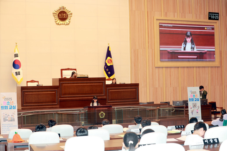청소년 의회교실은 학생들이 1일 도의원이 되어 본회의장에서 의장 선거, 안건처리, 2분 자유발언 등 다양한 의정활동을 직접 체험해보는 프로그램이다.