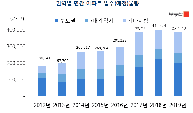 지방은 부동산 시장 규제와 더불어 공급과잉, 지역경기 침체가 맞물려 가혹한 한 해를 보낼 것으로 보인다. 특히 경상권과 충청권 아파트는 기존 미분양 아파트 물량이 쌓여 있는 상황에서 2019년 입주물량도 상당해 공급 리스크는 더 커질 것으로 우려된다.