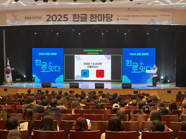 [경북 세계타임즈=한윤석 기자] 경상북도는 1일 영남대학교 천마아트센터 챔버홀에서 ‘2025 한글 한마당’ 기념행사를 개최했다.