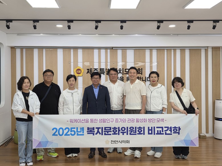 [천안시 세계타임즈=이현진 기자] 천안시의회(의장 김행금)는 지난 7월 1일부터 3일까지 2박3일간 복지문화위원회(위원장 이종만) 주관으로 제주특별자치도청, 제주특별자치도의회, 제주관광협회 등을 방문하여 ‘워케이션을 통한 생활인구 증가와 관광 활성화 방안 모색’을 주제로 비교견학을 실시했다고 밝혔다.