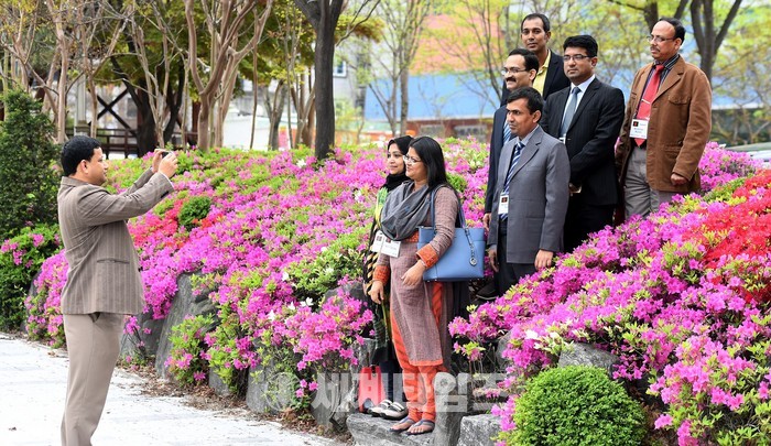 방글라데시에서 대전을 방문한 외국인들과 시민들은 아름다운 영산홍을 배경으로 연신 카메라와 스마트폰을 손에 쥐고 아름다운 봄날의 추억을 담기에 여념이 없다.