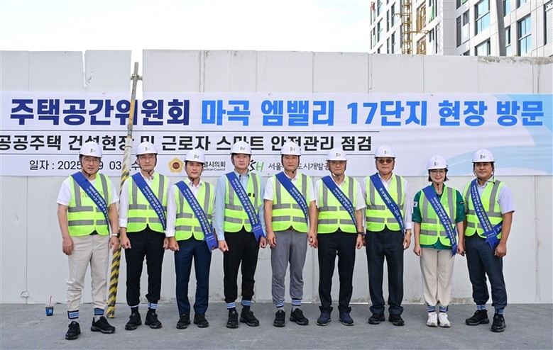 [서울 세계타임즈=이장성 기자] 서울특별시의회 주택공간위원회(위원장 김태수, 국민의힘, 성북4)는 제332회 임시회 기간인 9월 3일(수), 서울주택도시개발공사로부터 주요 현안 관련 업무보고를 받은 뒤 강서구 마곡엠밸리 17단지 건설현장을 방문하여 온열질환 대응 모의훈련 및 스마트 안정장비 시연 등 안전기본수칙을 집중 점검했다.