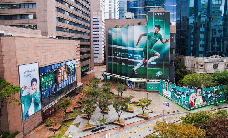 손 선수의 ▲생동감 있는 모습이 담긴 대형 ‘그래피티 월(graffiti wall)’ ▲드리블하며 질주하는 모습의 지상 7층 높이 ‘벽면 래핑’ ▲국가대표 유니폼 전시 ▲그린 그라운드 라이팅 등 이색적이고 압도적 경관의 조형물들이 점차 완성되가며 ’하나 플레이 파크’는 관광객들이 하나 둘 모여 사진 찍고 SNS에 공유하는 새로운 ‘핫스팟(hot spot, 활기 넘치는 신나는 곳)’으로 부상했다.