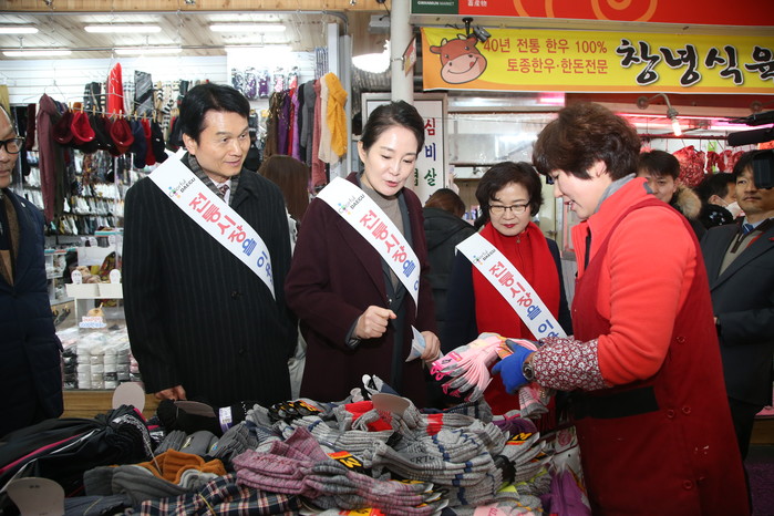 시장에서는 미리 준비한 ‘온누리상품권’으로 설 제수용품과 생필품을 구입하는 한편, 상인회 대표 등 시장 상인들을 일일이 만나며 어려움을 살피고, 시장 활성화에 힘쓰는 관계자들의 노고를 격려했다.