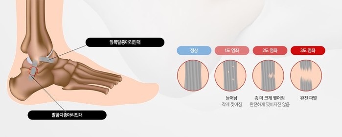 최 원장은 “발목 염좌는 인대의 손상 정도에 따라 경도, 중증도, 중증 3단계로 나눈다. 경도나 중등도의 경우에는 염좌가 생긴 직후에는 냉찜질을 하는 것이 좋다. 운동이나 보행 중 발목을 접질리면 발목 바깥쪽 인대 중 일부가 부분 파열되거나 파열된 인대에 부종, 염증이 생기는 경우가 많은데, 이 경우 염좌가 생긴 후 1~2일 정도 냉찜질하면 증상이 완화될 수 있다”고 설명했다.