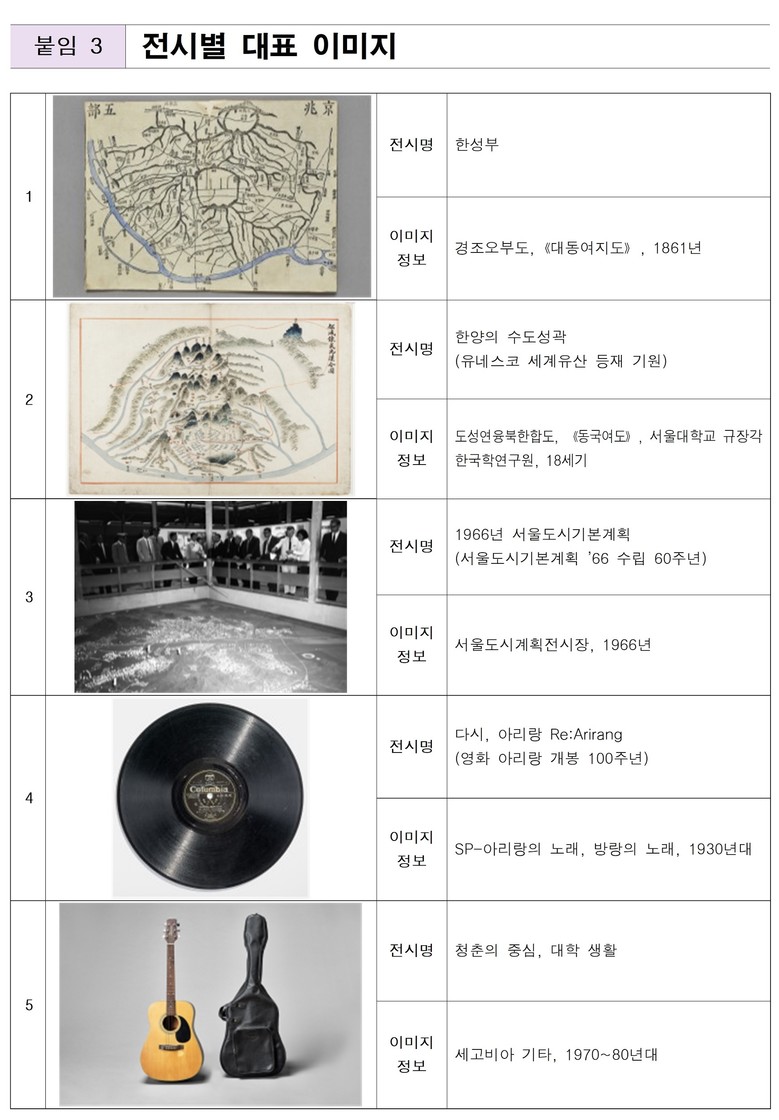 ○ (서울을 빚다) 조선시대부터 현대까지 수도 서울을 형성해 온 행정체계와 도시계획, 도시 인프라를 주목하는 전시를 개최해, 도시 서울의 근간을 살핀다.