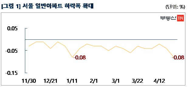 [세계타임즈 심귀영 기자] 국지적인 재건축 아파트값 반등으로 하락폭이 둔화됐던 서울 아파트 매매시장이 일반아파트의 매물 증가로 다시 하락폭을 확대했다.
