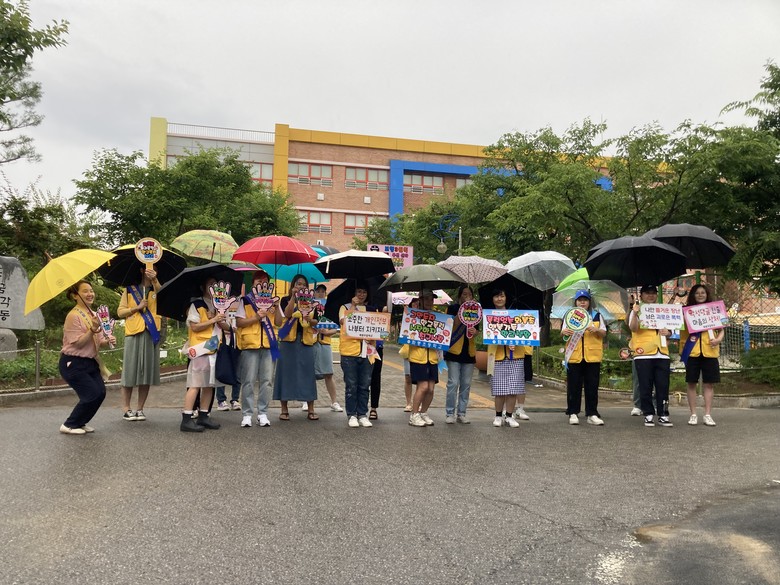 [남양주시 세계타임즈=송민수 기자] 경기도구리남양주교육청 화봉초등학교(교장 서동연)는 7월 2일, 학부모 30여 명이 참여한 가운데 학교 폭력 예방을 위한 캠페인을 진행했다. 학부모들은 교문 앞에서 미리 준비한 피켓을 들고 등교하는 학생들을 맞이하며 학교폭력 없는 건강한 학교 문화를 조성하기 위한 활동을 펼쳤다.