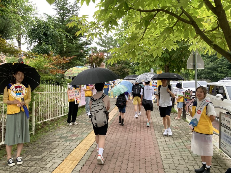 캠페인 활동 당일 아침에 비가 내렸음에도 불구하고, 학부모회원들은 ‘따돌림, 괴롭힘 학교폭력 NO!’, ‘학교폭력예방, 입장바꿔 생각해요’ 등의 피켓을 들고 학생들에게 학교폭력의 문제점을 인식시키고 예방의 중요성을 알렸다.