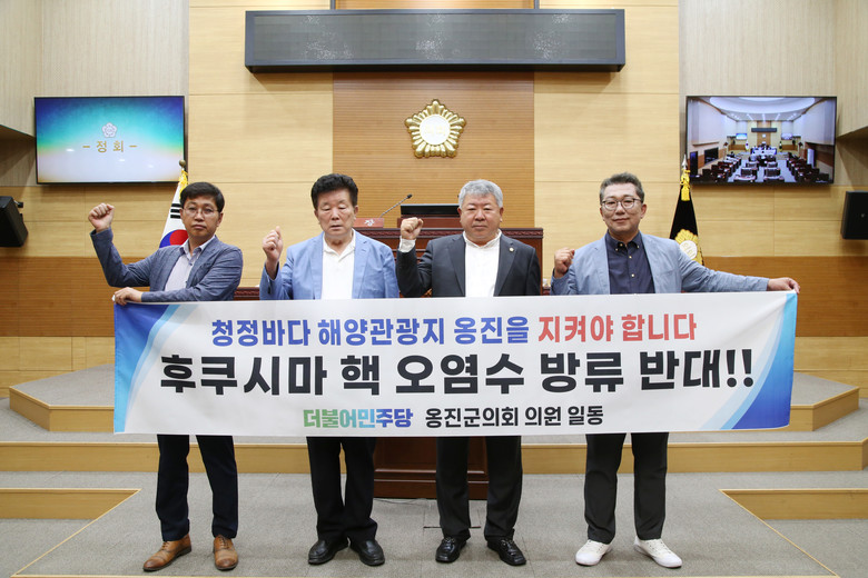 더불어민주당 의원 일동은 결의문에서 “방류된 오염수로인한 해양생태계와 수산업에 막대한 피해가 예상되어 우리 바다 수산물 먹거리 안전과 소비위축으로 국민경제와 해양환경에 중대한 손상을 초래할 수 있으며, 서해에 청정섬들로 이루어진 우리 옹진군의 피해는 더욱 크다”며, “백령면의 천연기념물인 사곳해수욕장, 점박이물범의 서식지, 대청면 해안사구, 영흥·북도면의 갯벌은 유네스코 등재를 추진할 만큼 자연적 가치가 상당하고 연평도의 꽃게, 덕적‧자월의 연안어장 등 청정해역에서 생산되는 풍부한 해산물은 오염수 방류가 시작되면 각종 방사성 오염물질로 인해 본래의 가치를 잃을 것이며, 우리 옹진군에서 바다를 삶의 터전으로 삼아온 우리 군민들이 입을 피해와 미래 세대에 미치는 악영향은 명약관화할 것이다”라고 규탄했다.